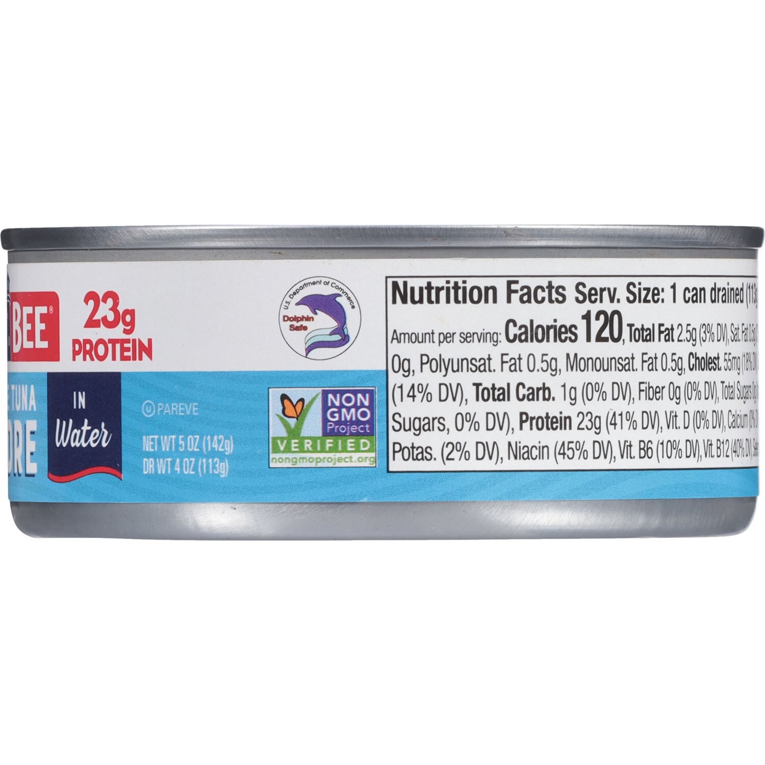 Est. 1899. Bee well for life. Wild caught. US Department of Commerce: Dolphin safe. Recycle me.