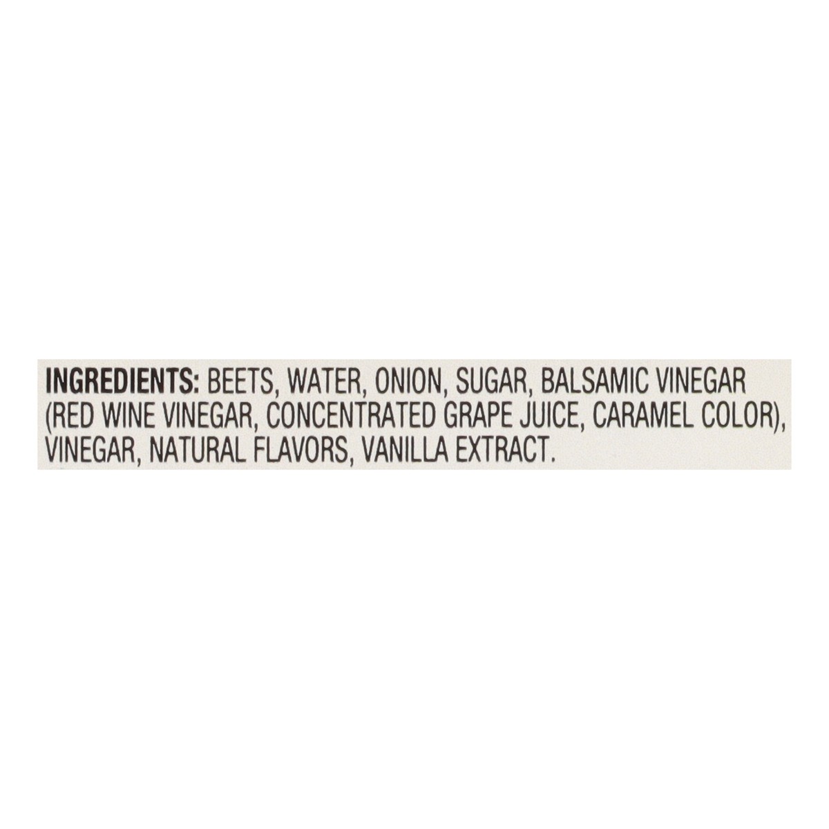Beets, Water, Onion, Sugar, Balsamic Vinegar (Red Wine Vinegar, Concentrated Grape Juice, Caramel Color), Vinegar, Natural Flavors, Vanilla Extract.