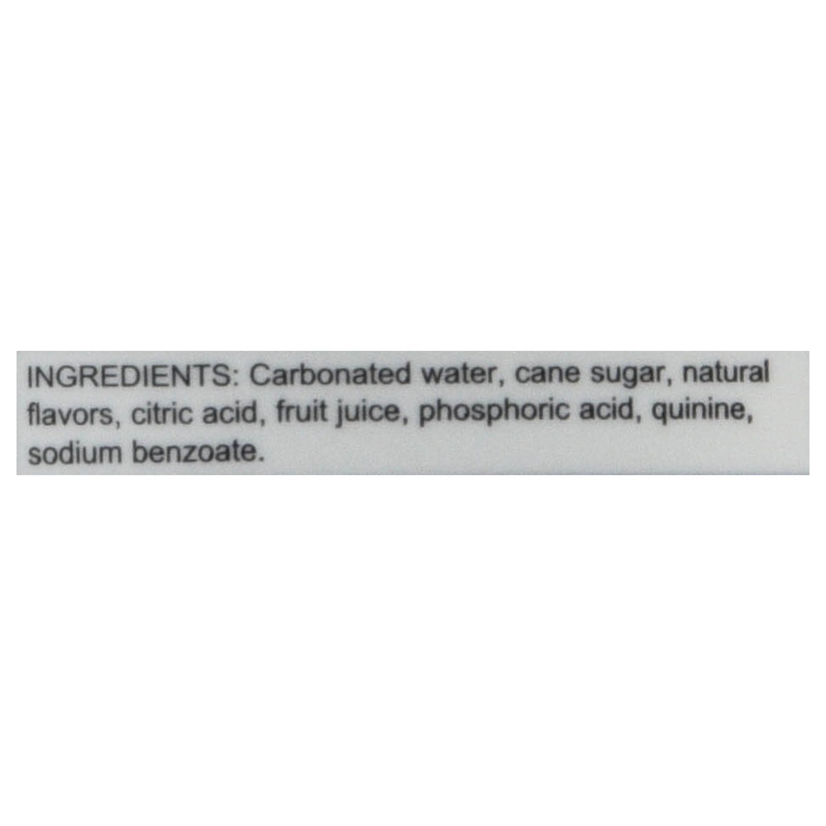 Carbonated Water, Cane Sugar, Natural Flavors, Citric Acid, Fruit Juice, Phosphoric Acid, Quinine, Sodium Benzoate.