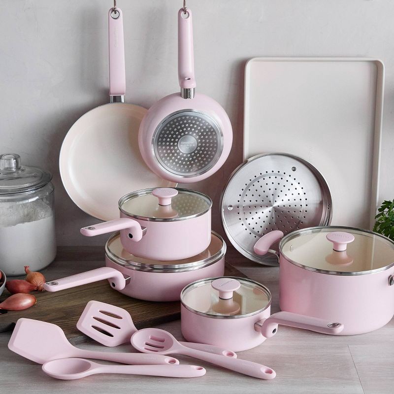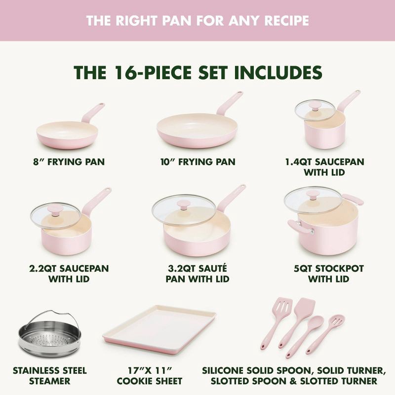 GreenPan Rio 16pc Ceramic Nonstick Cookware Set Pink