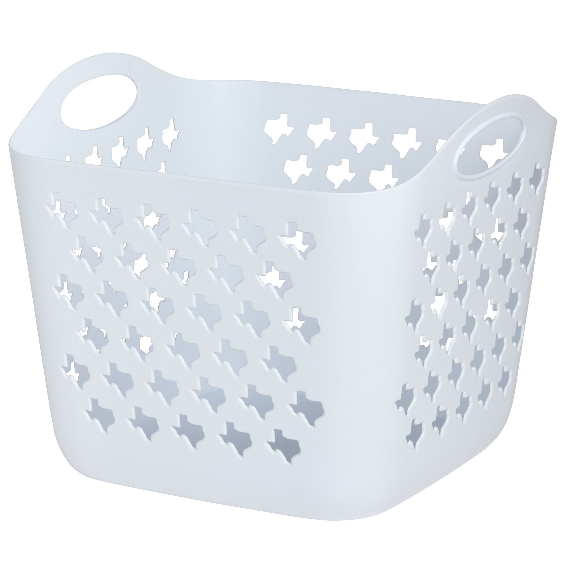 Featuring cut-outs of Texas all over, this small square white laundry basket has two built-in handles for comfortable carrying around the house.• Small square white flexi hamper• Cut-outs of Texas all…