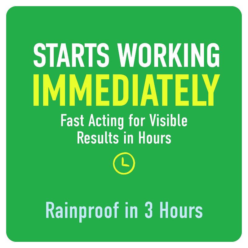 - Roundup® For Lawns1 starts working immediately and is rainproof in 3 hours