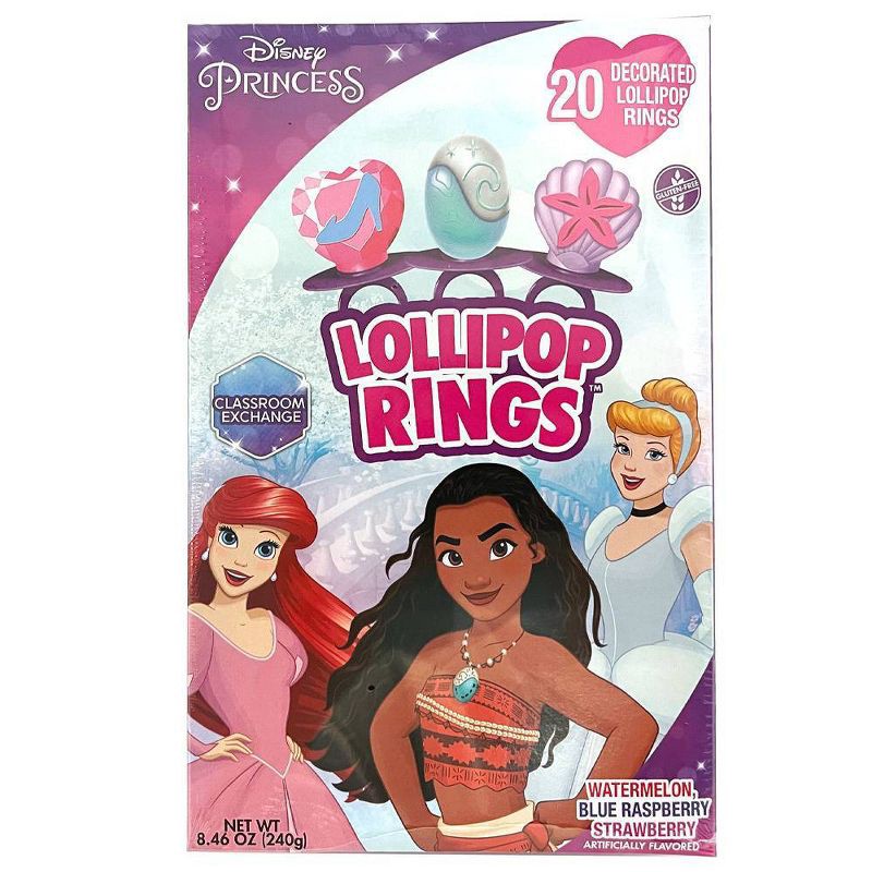 Disney Princess Valentine's Classroom Exchange Lollipops Rings Candies - 8.46oz/20ct