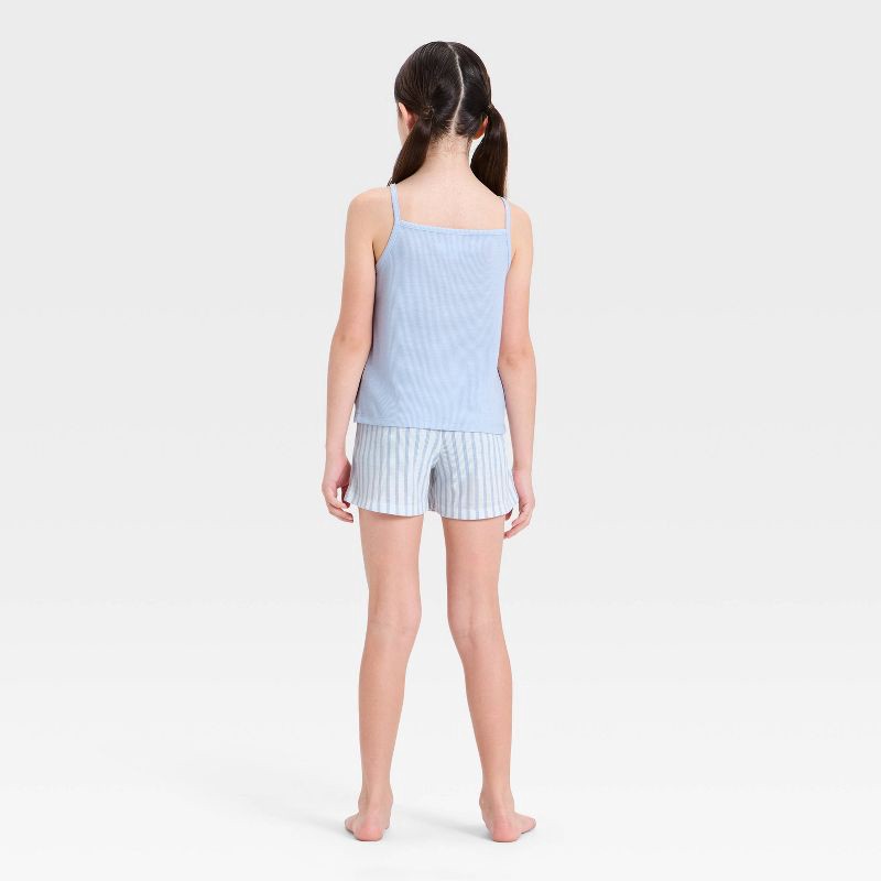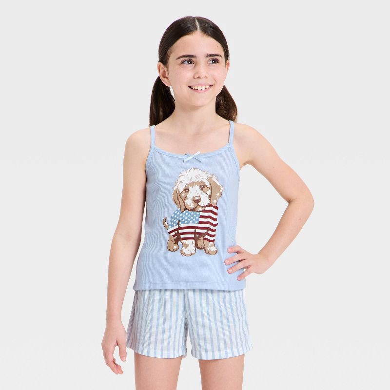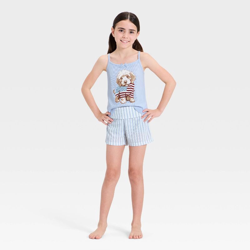 Grayson Threads Kids Girls' Americana Dog 2pc Fold Over Shorts and Cami Pajama Set - Light Blue S