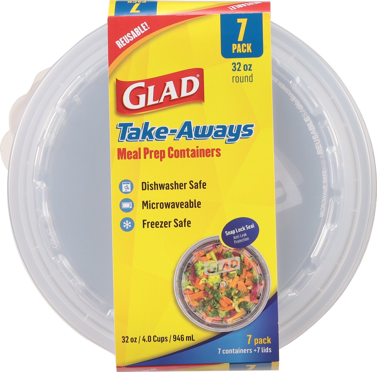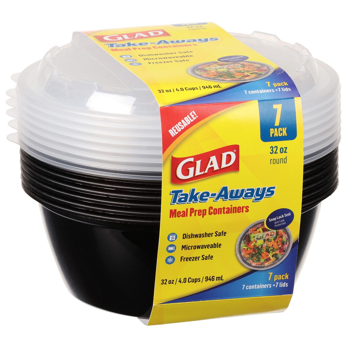 Glad Take-Aways 32 oz Round Meal Prep Containers 7 Pack