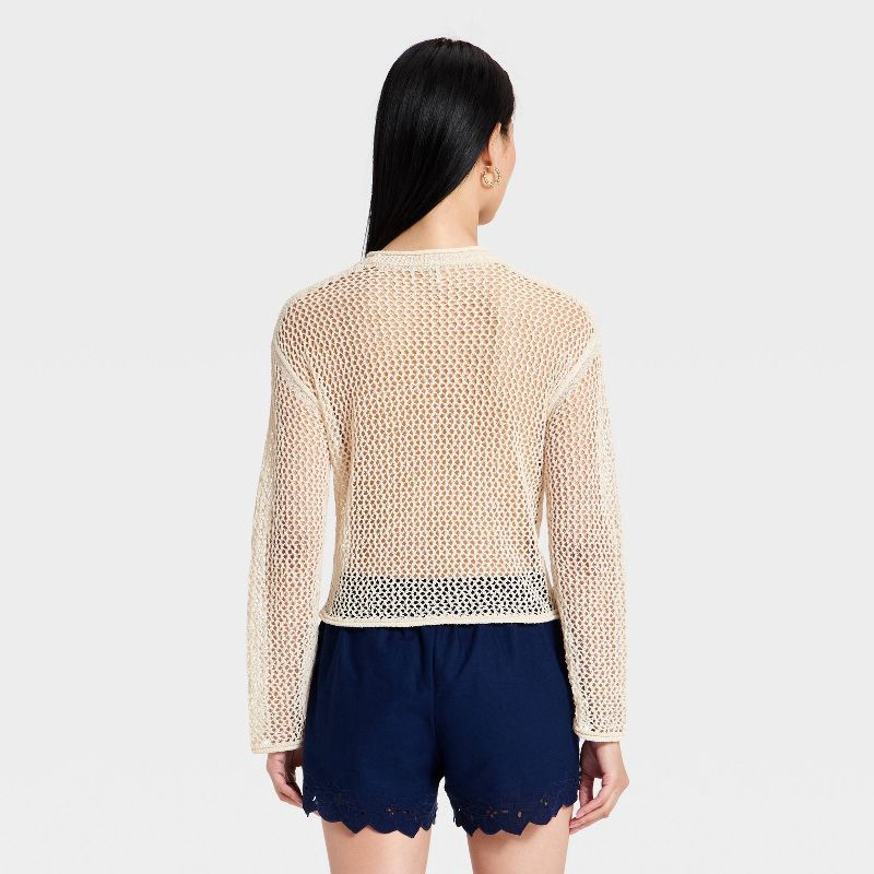 Women's Open Work Shell Pullover Sweater - A New Day™ Cream/Blue S