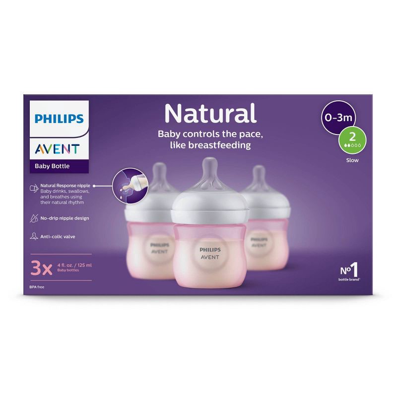 Philips Avent Natural Baby Bottles with Response Nipples - Pink - 4oz/3pk: Plastic Container, 3 Pack, Medium Flow