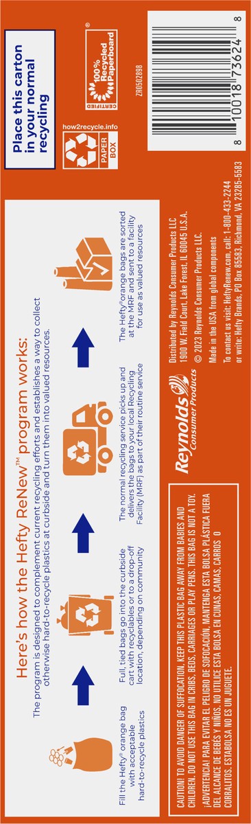 - Designed For Hefty Renew Programs—These orange bags are only for use in ReNew program areas