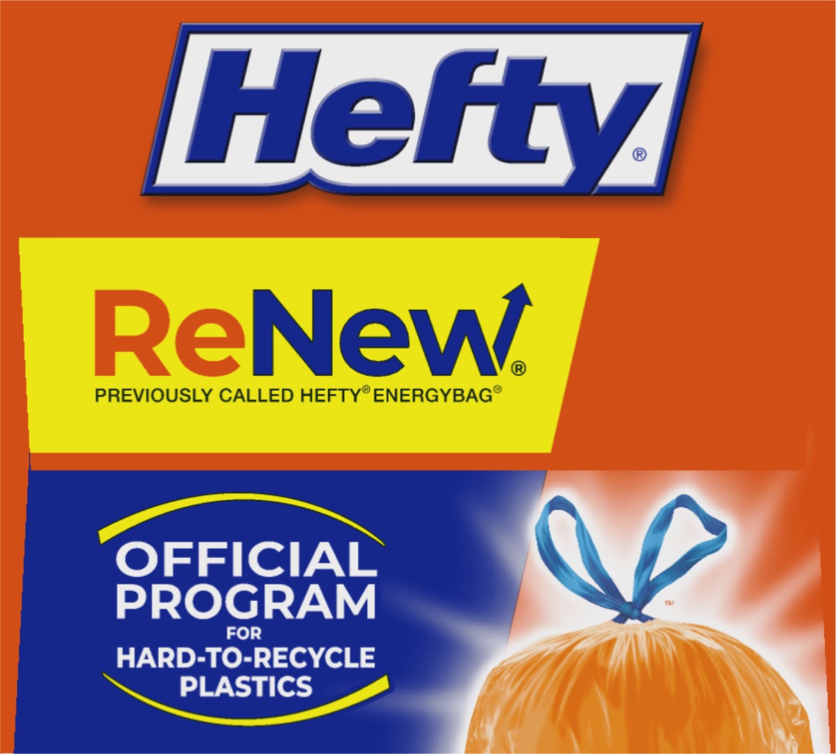 Designed to complement current recycling efforts in participating areas, the Hefty ReNew™ program (formerly Hefty EnergyBag), made with 20% post-consumer recycled materials, provides a simple, conveni…