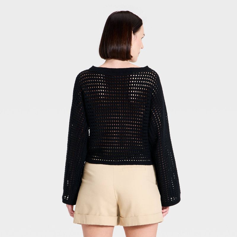 Women's Open Work Oversized Pullover Sweater - A New Day™ Black XS
