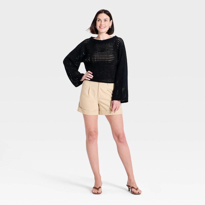 Elevate your layering game with this Open-Work Oversized Pullover Sweater from A New Day™. Made from a midweight cotton-recycled polyester blend, this oversized sweater features an eye-catching open-w…