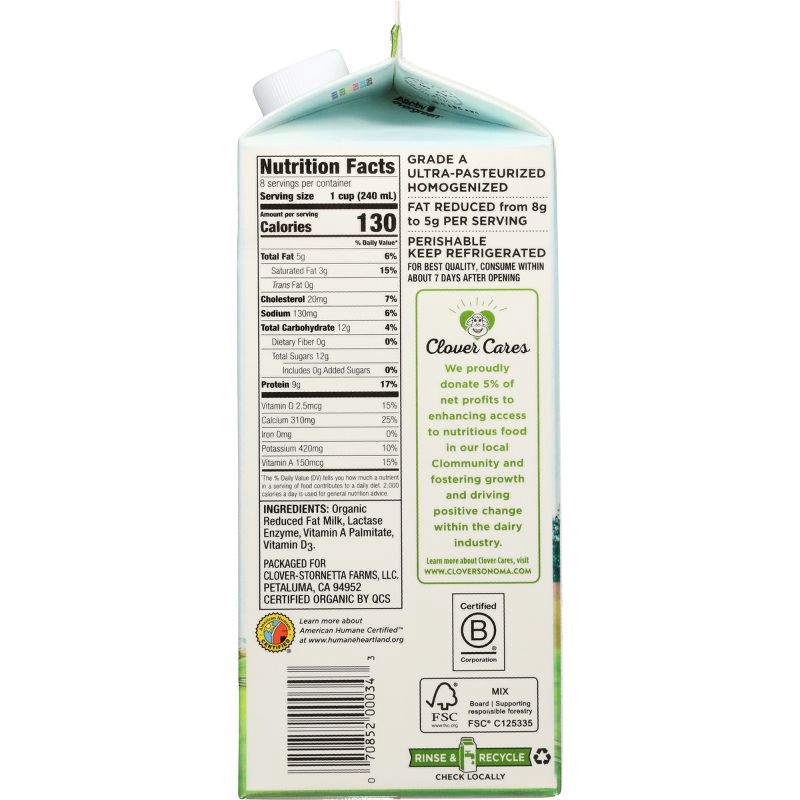 Clover Sonoma UHT Organic Pasture Raised Lactose Free 2% Milk - 0.5gal