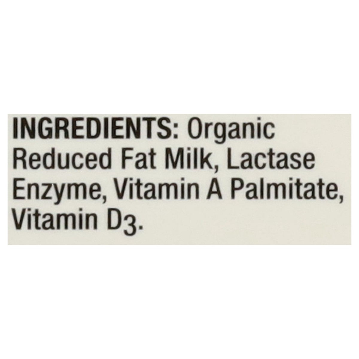 Organic Reduced Fat Milk, Lactase Enzyme, Vitamin A Palmitate, Vitamin D3.