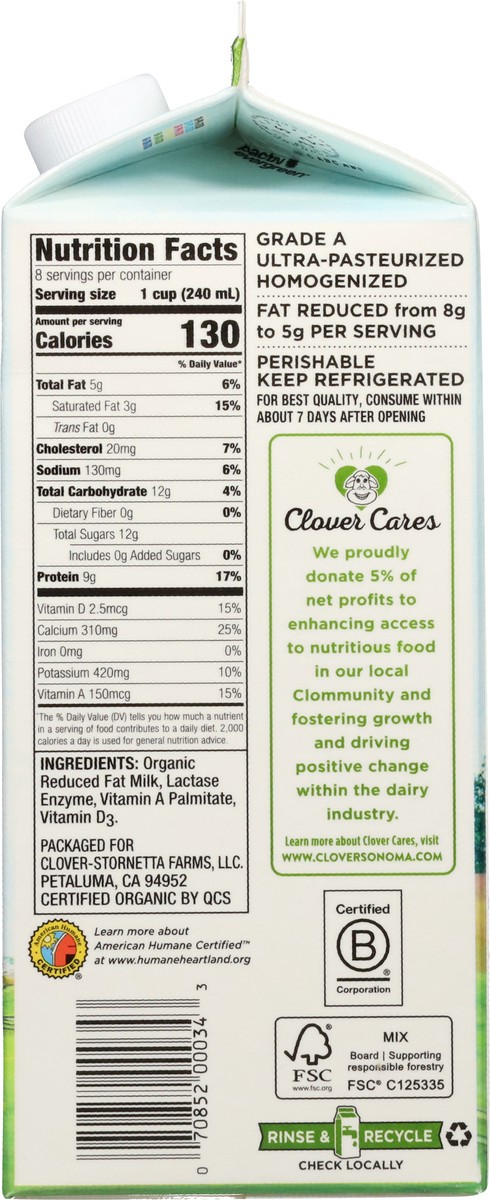 Clover Sonoma Organic Lactose Free 2% Reduced Fat Milk 0.5 gal