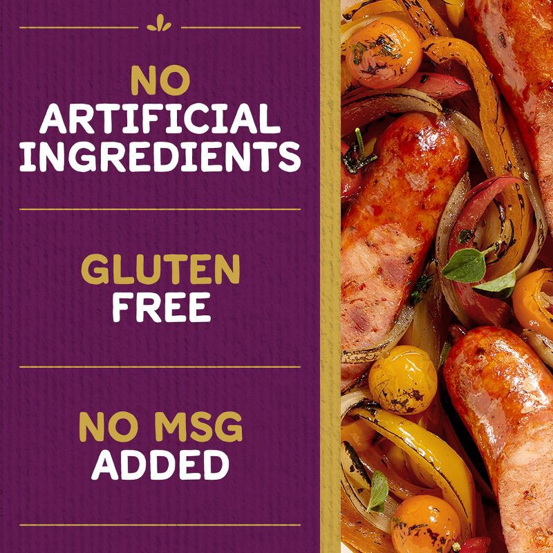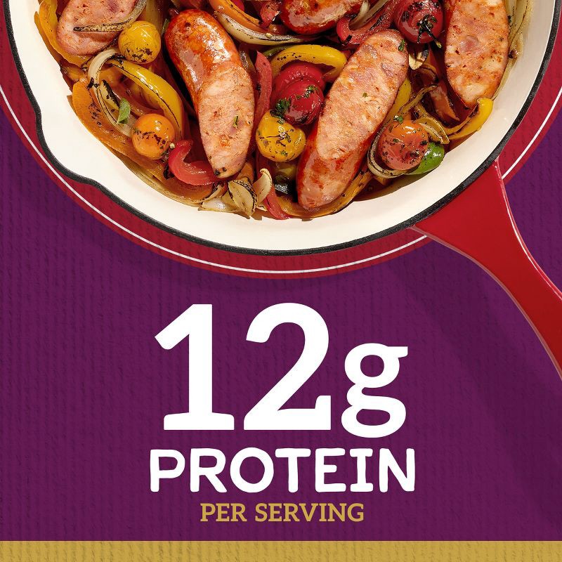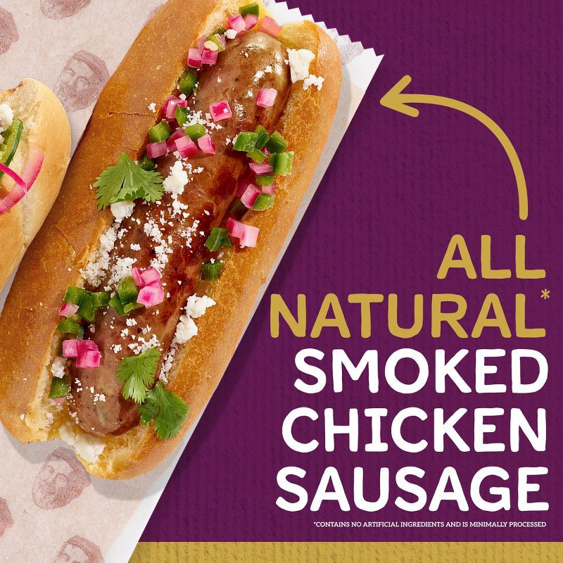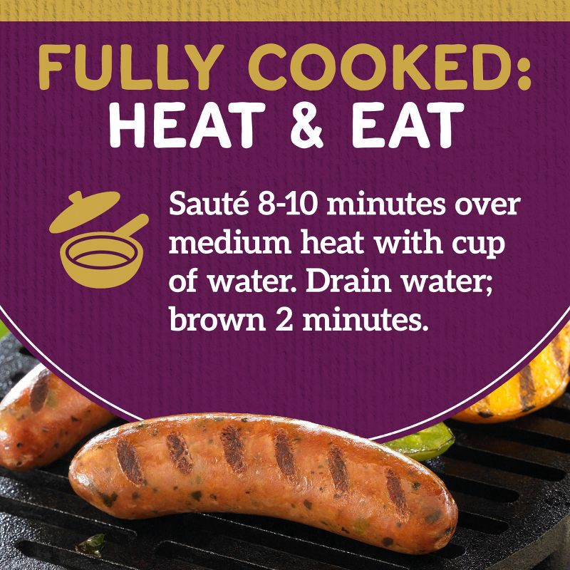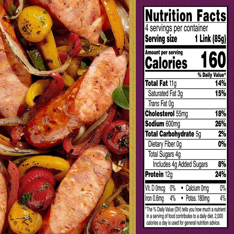 - Fully cooked chicken sausage with vibrant, savory flavor and a hint of sweetness