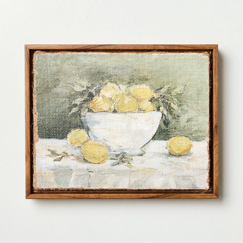 Refresh any room with a touch of zesty charm with this Lemon Bowl Still Life on Burlap Framed Wall Art from Hearth & Hand™ with Magnolia. Encased in a gorgeous brown polystyrene frame, this still life…