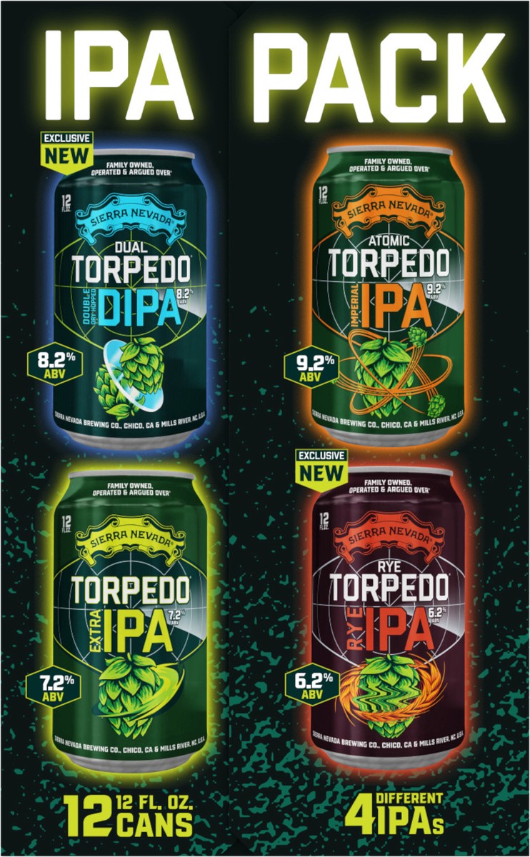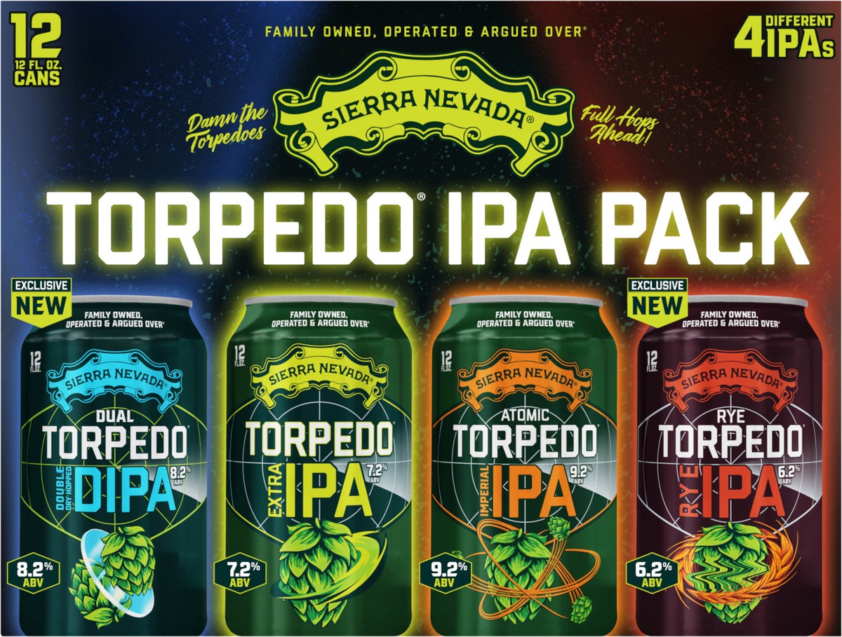 Unbox maximum hops with the Torpedo IPA Pack! Featuring two exclusive new varieties: Dual Torpedo and Rye Torpedo. Sierra Nevada rotates the beers in this pack multiple times per year and includes speā¦