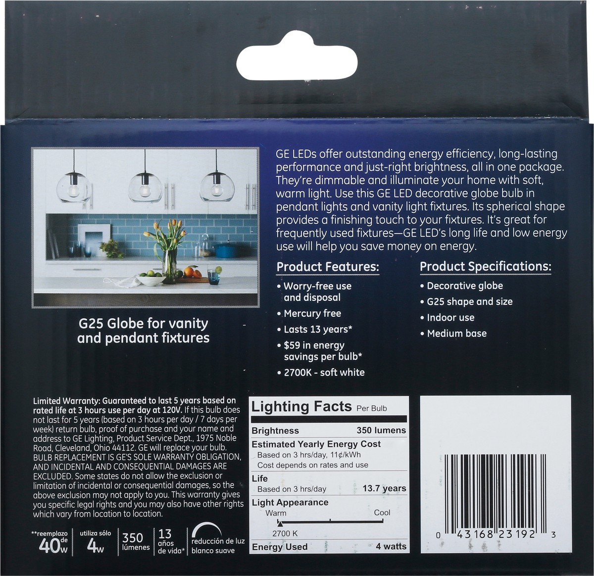 Brightness Quantity: 350 lumens. Energy Info: $0.48 based on 3 hrs/day, 11 cents /kWh. Cost depends on rates and use. 4 watts. Package Info: 2-Pack. 2. Voltage: 120 volts. Bulb Info: Indoor. LED. Is D…