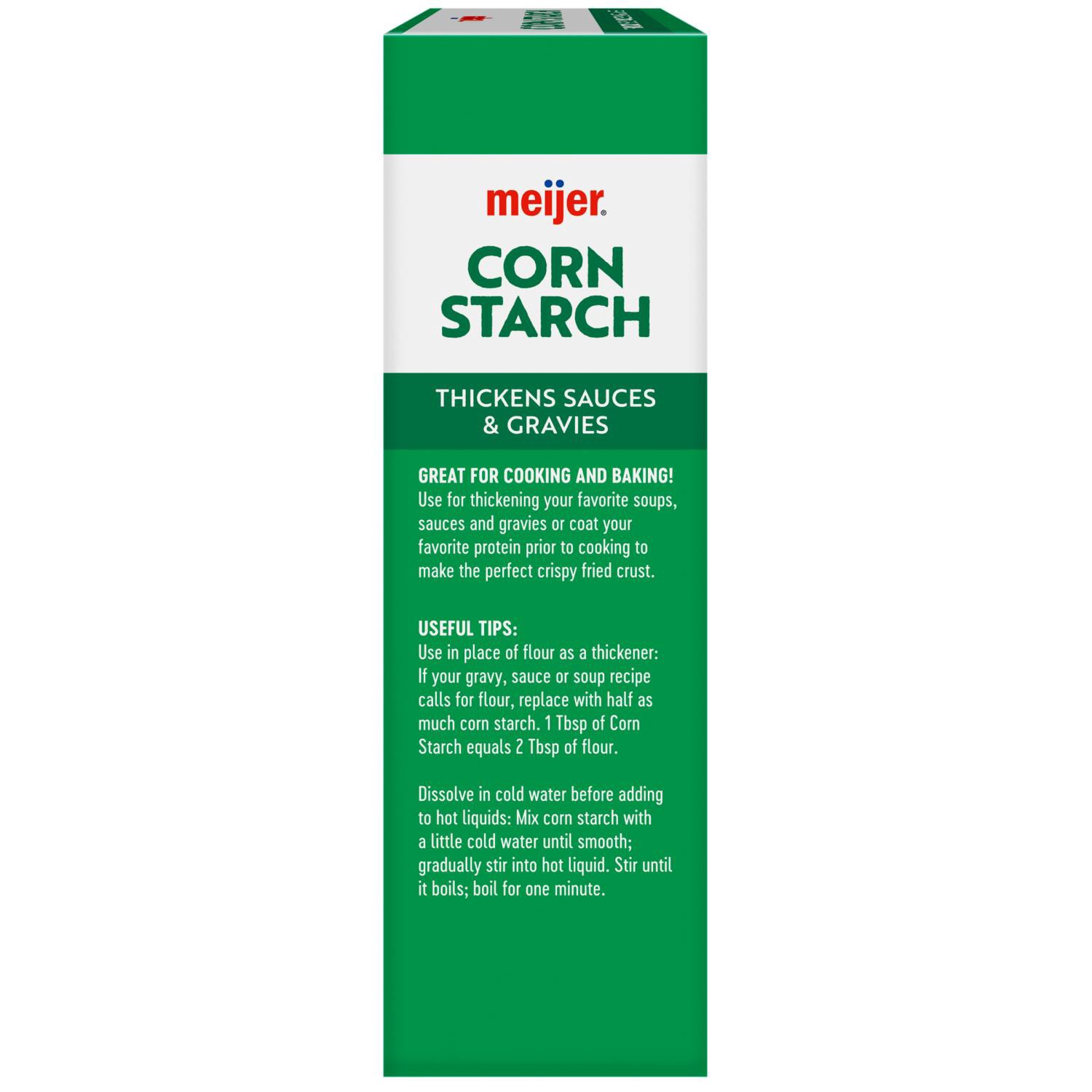 Eliminate unwanted runniness in your favorite foods with Meijer Pure Corn Starch! Great for thickening your favorite soups, sauces and gravies, this powerful product helps provide for better absorptio…