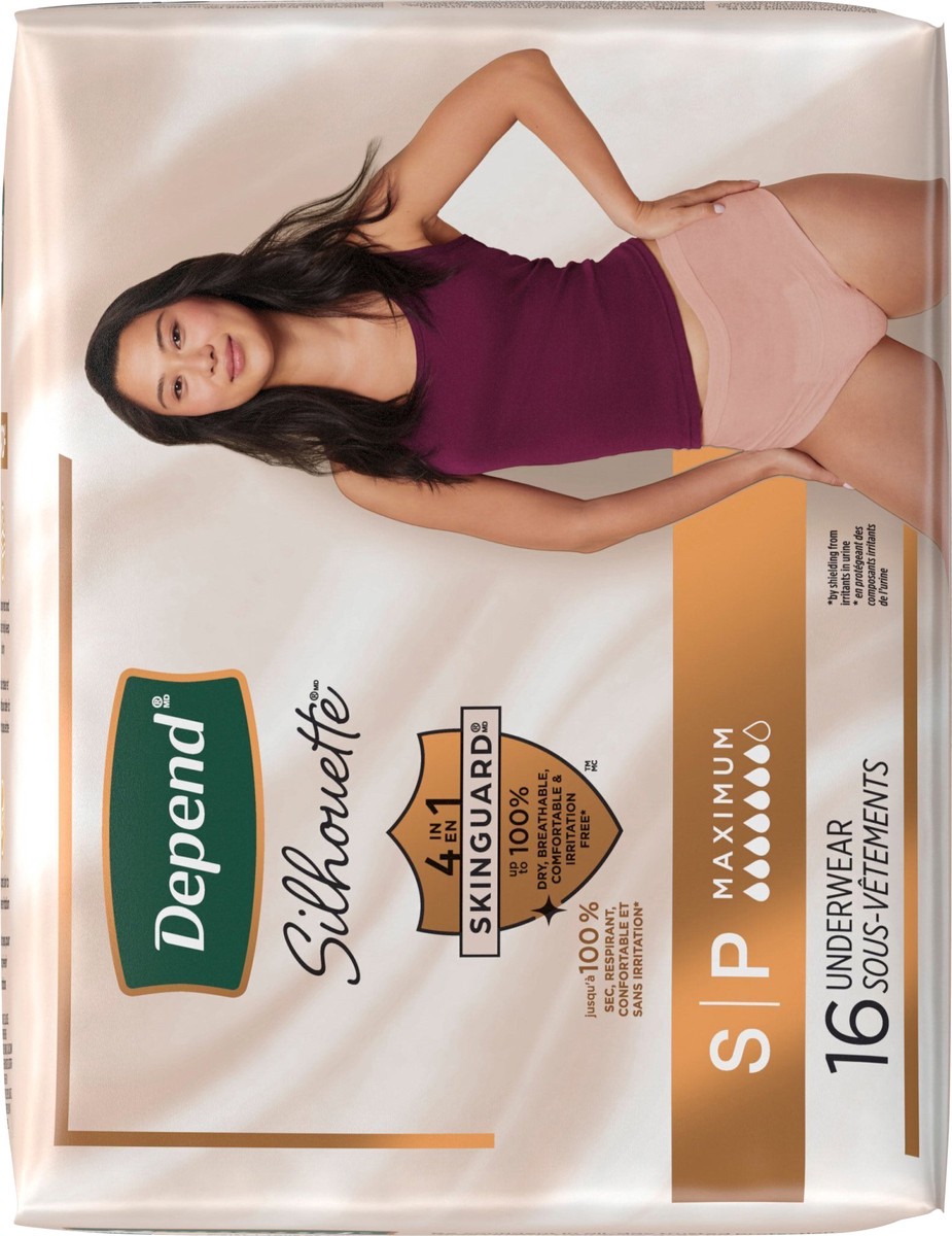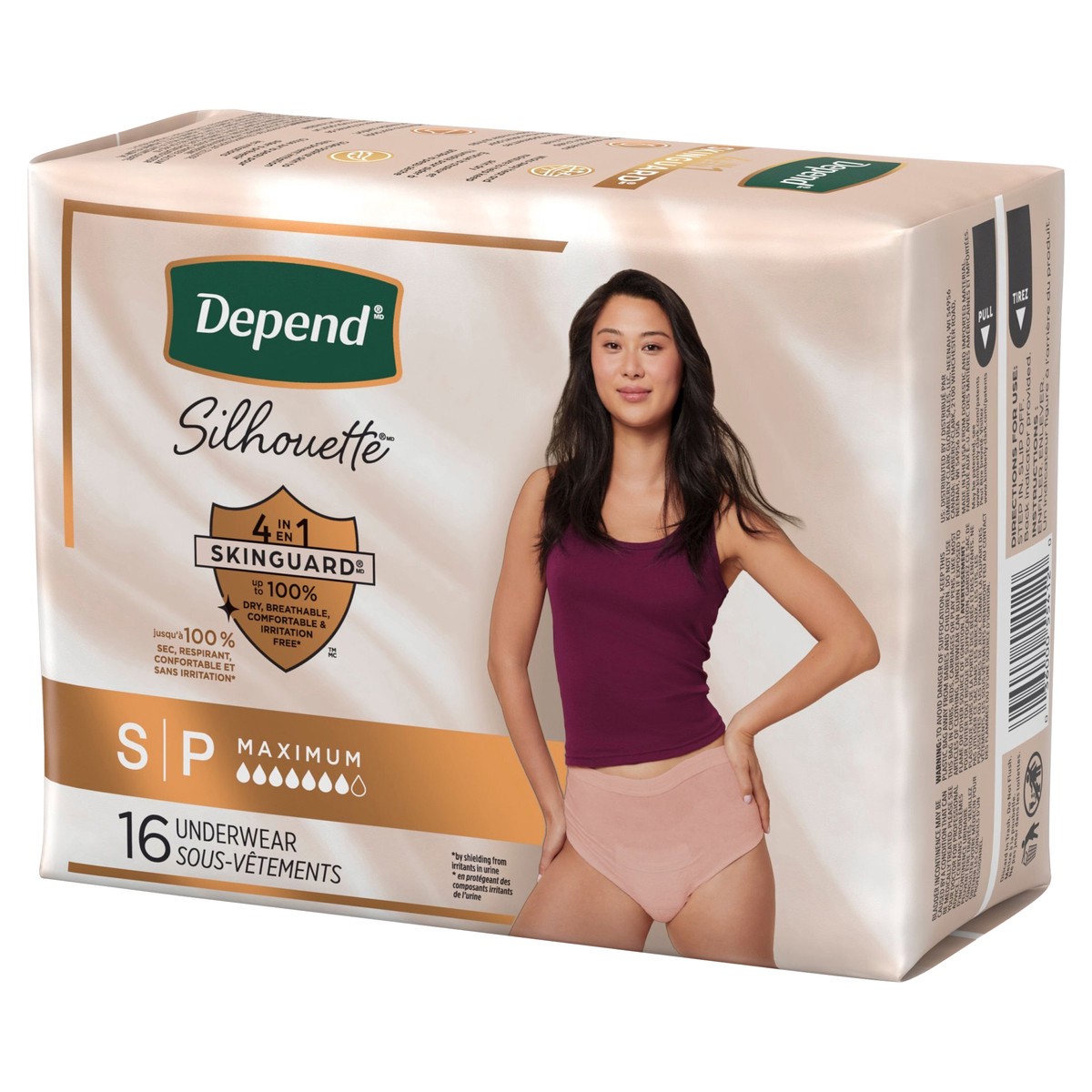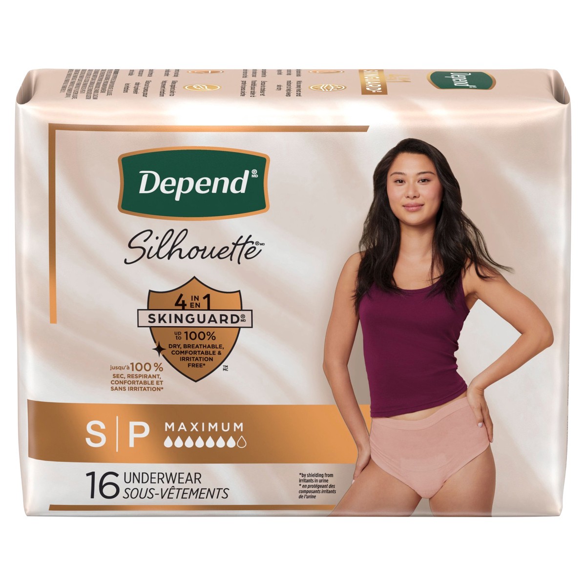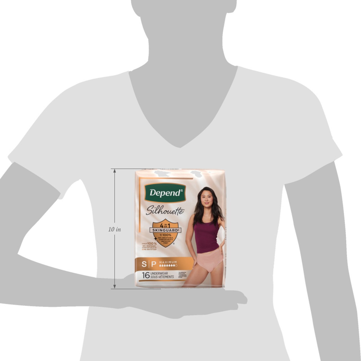 Depend Silhouette Adult Incontinence & Postpartum Bladder Leak Underwear for Women, Maximum Absorbency, Small, Pink, 16 Count