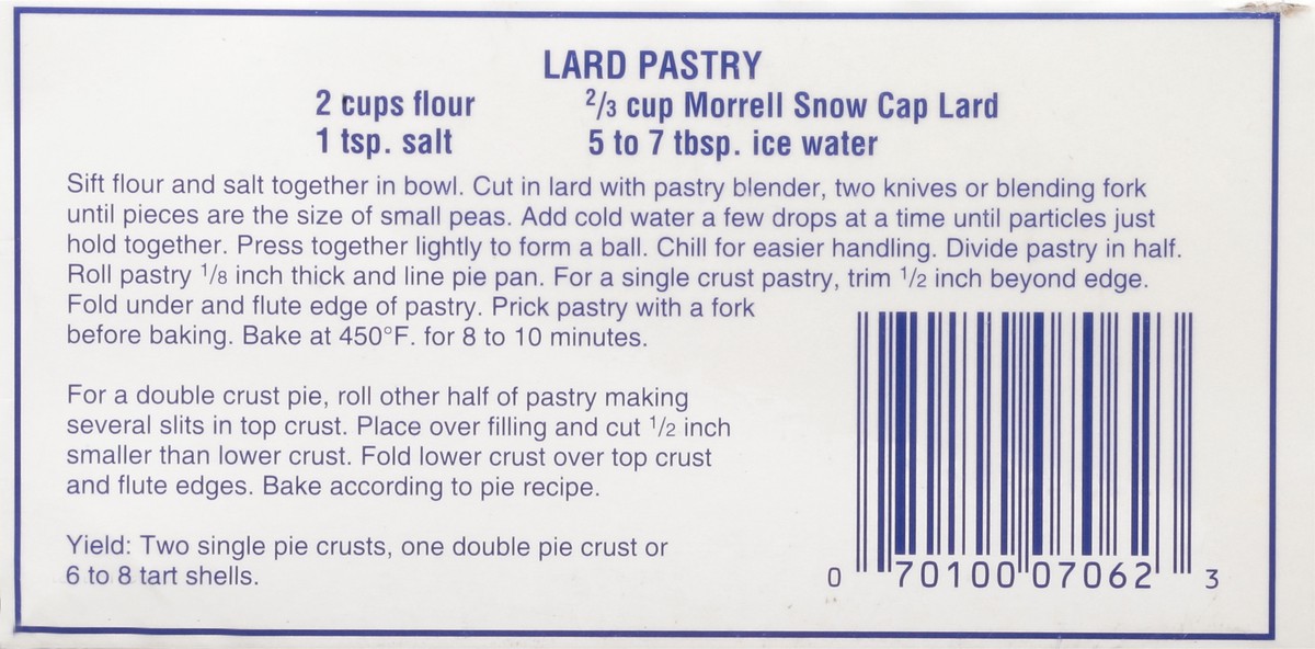Snow Cap Lard, With Hydrogenated Lard Bht And Bha Added To Help Protect Flavor