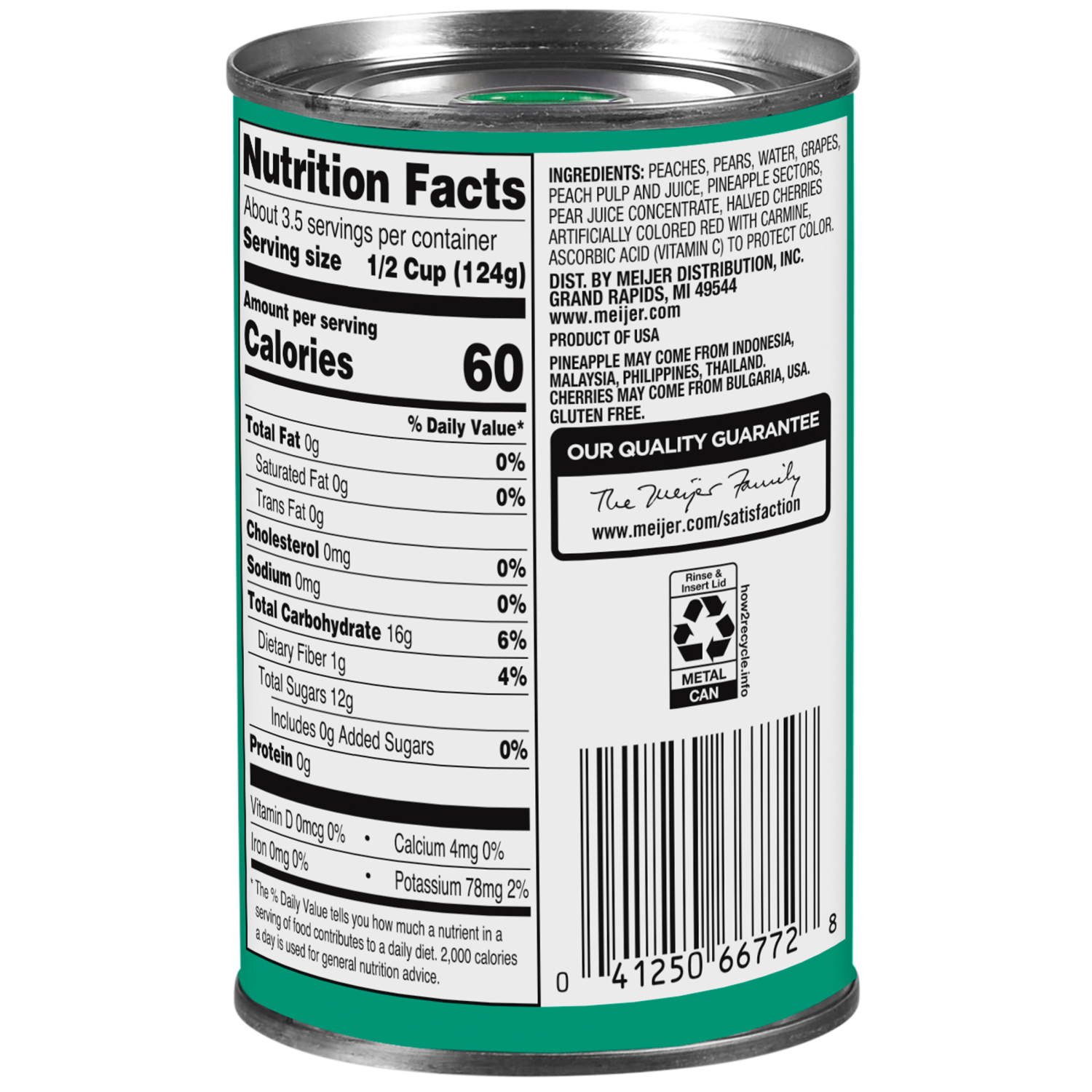 Trick your tastebuds into thinking any meal is a dessert when you include Meijer Mixed Fruit Cocktail in 100% Juice. A delightful mix of peaches, pears, grapes, pineapple, and cherries, this fruit ble…