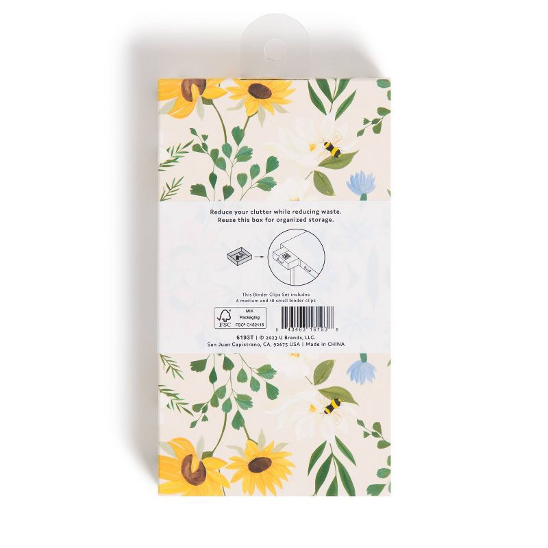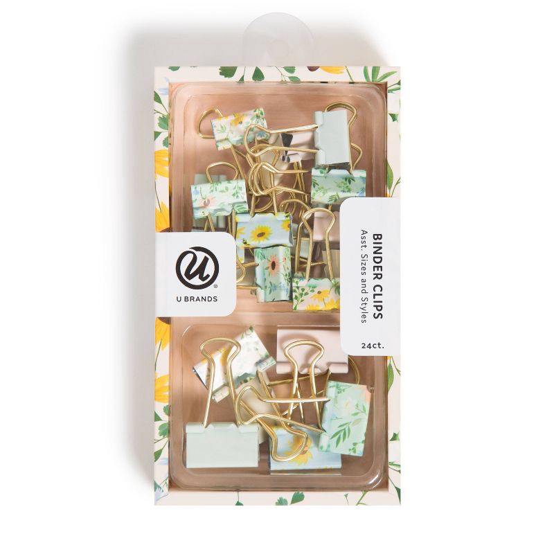 Introduce U Brands® 24 count Vintage Sunflower Binder Clips to your everyday projects that require more than a basic staple or paper clip. The soft pastel colors and assorted vintage floral patterns a…