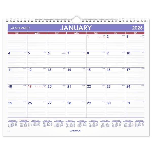 AT-A-GLANCE® 2026 Monthly Wall Calendar, Medium, 15"" x 12""