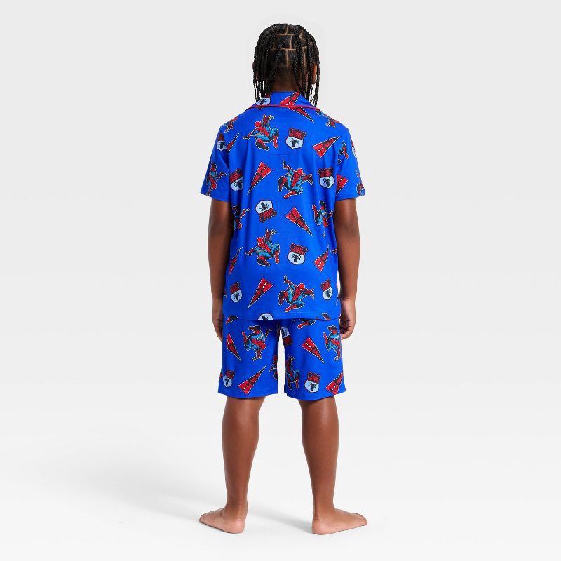 Dress up your kid in a great look for bedtime with the Spiderman Coat Pajama Set. This two-piece pajama set includes a short-sleeve shirt and a pair of shorts, both with Spiderman allover for a fan-fa…
