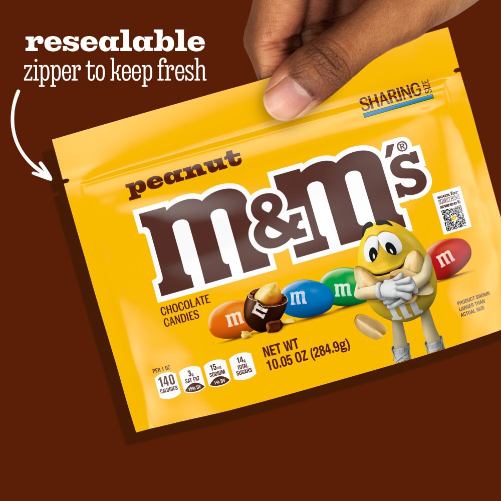 - Contains one (1) 10.05-ounce bag of M&M'S Peanut Chocolate CandyThis colorful candy is made with real peanuts and milk chocolate and surrounded by a candy shellPeanut M&M'S Candy is a favorite movie candy to share with family and friendsPeanut M&M'S Chocolate Candy is a little nutty