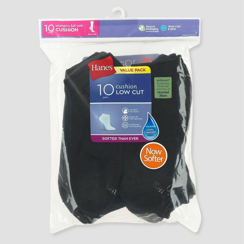 Hanes Cushioned Women's Low-Cut Athletic Socks, Black, Size 5-9