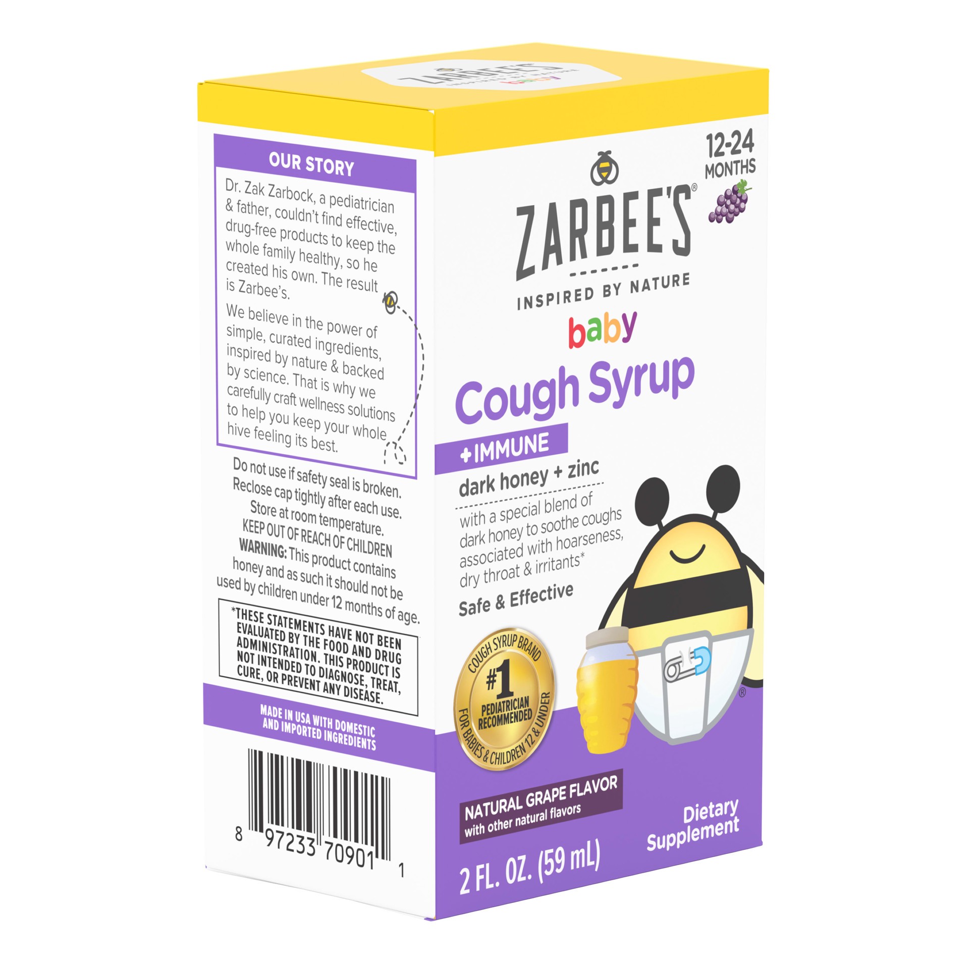 Zarbee's Baby Cough Syrup Immune With Honey And Zinc Natural Grape Flavor - 2 Fl. Oz.