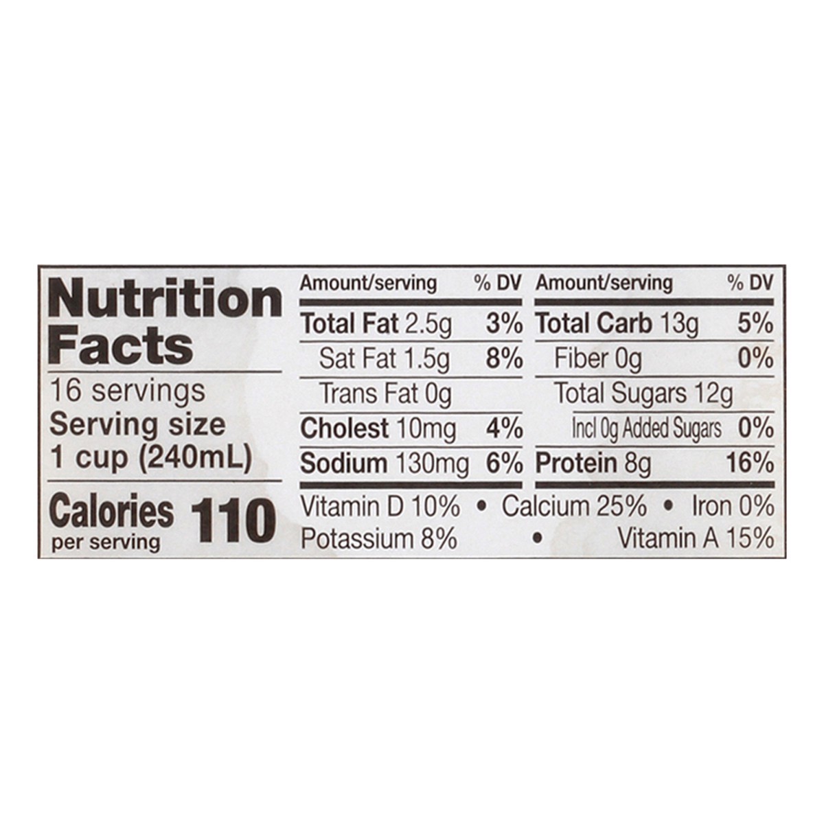 Ingredients: Low fat milk, Vitamin A Palmitate, Vitamin D3.