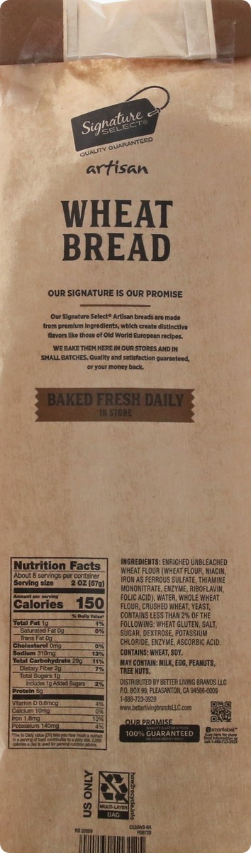 Per 2 oz: 150 calories; 0 g sat fat (0% DV); 310 mg sodium (13% DV); 1 g total sugars. Baked fresh daily in store. Our Signature is our Promise: Our Signature Select artisan breads are made premium in…