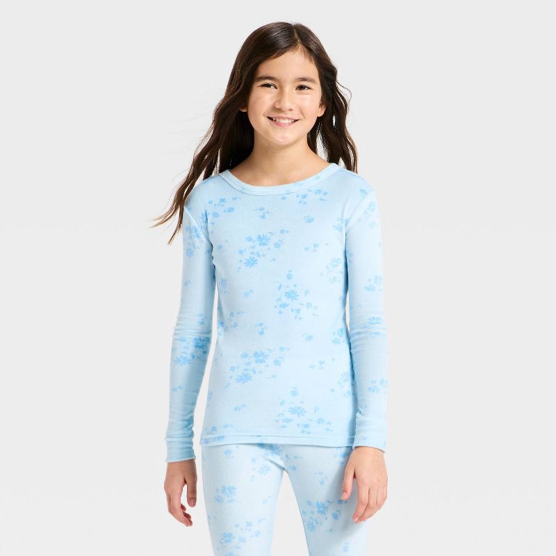 Girls' 2pc Floral Snuggly Soft Pajama Set - Cat & Jack™ Blue 12