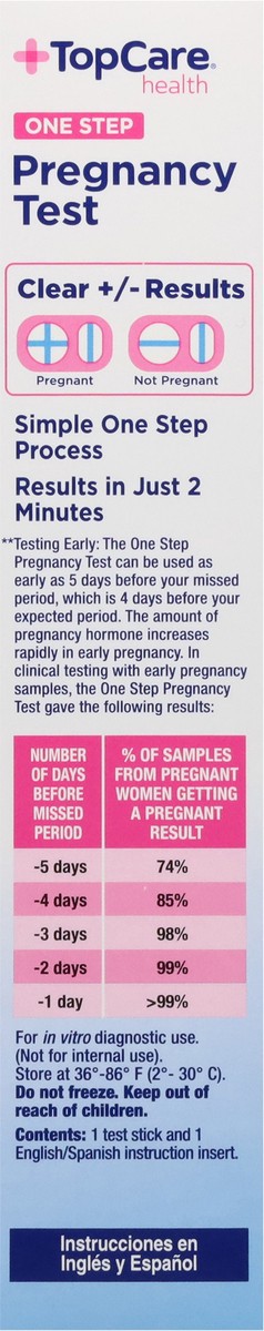Content: 1 test stick and 1 English and Spanish instruction insert. The day of your expected period (99% accurate at detecting typical pregnancy test hormone levels. Note that hormone levels vary. See…