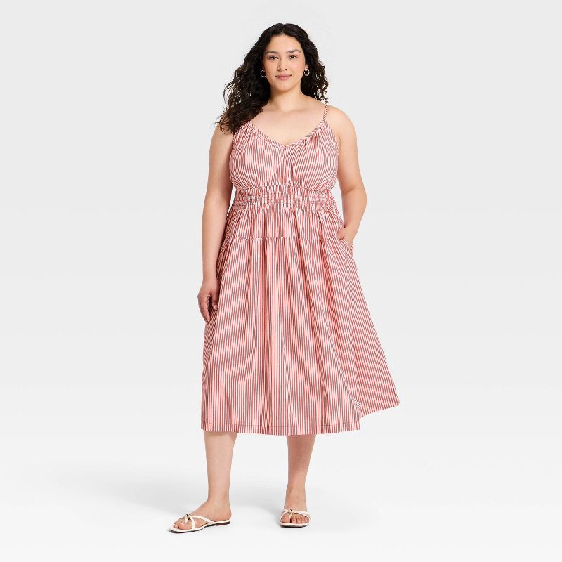 Women's Midi A-Line Dress - Ava & Viv™ Red Striped XXL