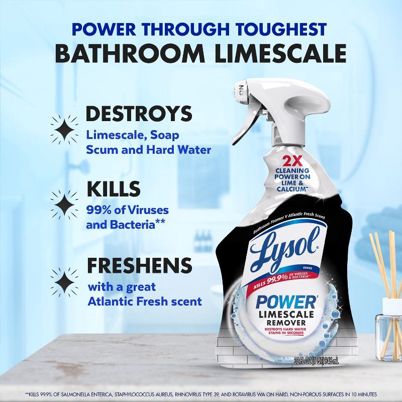 Lysol Power Limescale Remover is engineered to break down the toughest bathroom buildup with 2X Cleaning Power on Lime & Calcium**. This fast-acting formula works in as little as 30 seconds to dissolv…