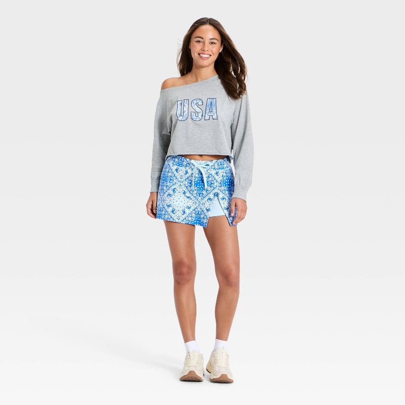 Women's Washed Jersey Slit Skort - JoyLab™ Blue Bandana XL