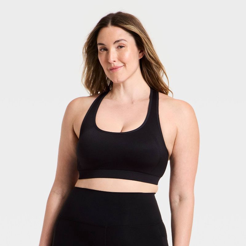 Women's Seamless Medium Support Racerback Sports Bra - All In Motion™ Jet Black XS