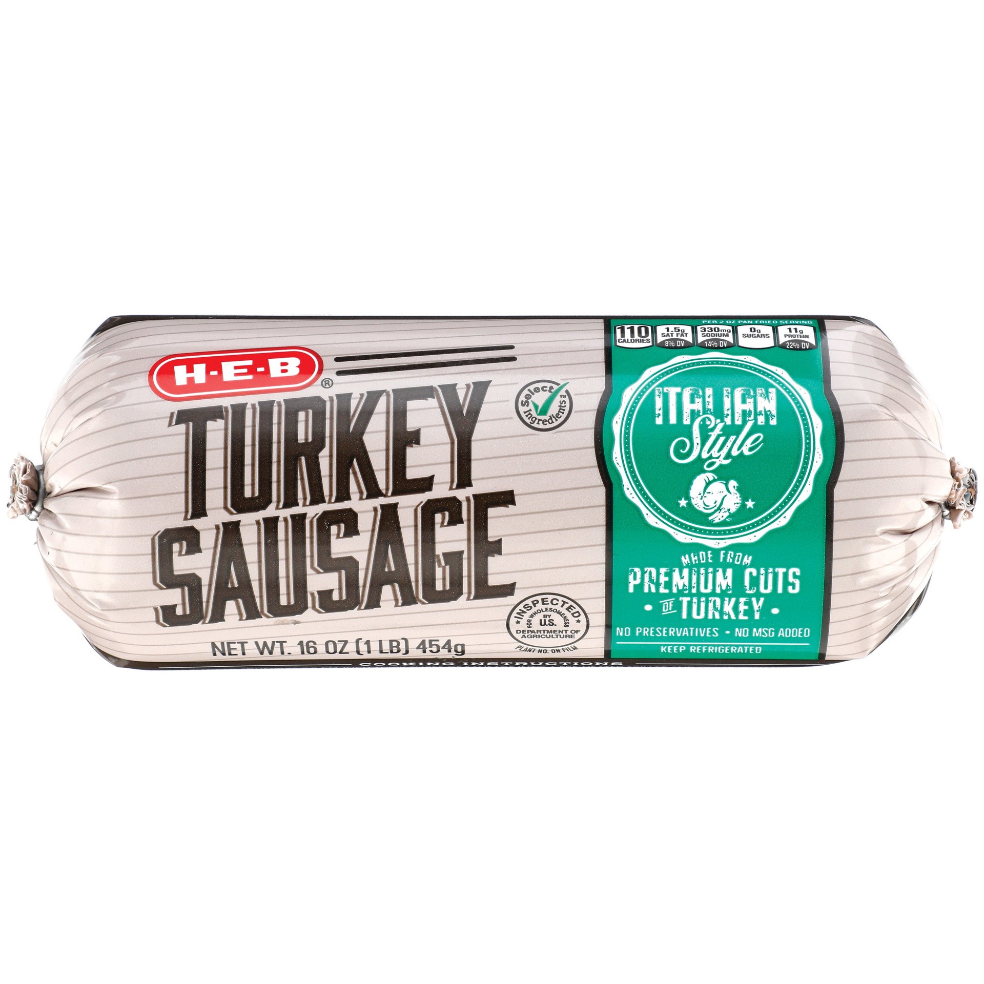 Made with Italian-style seasoning and premium cuts of turkey, this H-E-B turkey sausage can be sliced into patties or broken into crumbles in a skillet. With no MSG added and no preservatives, it's pa…