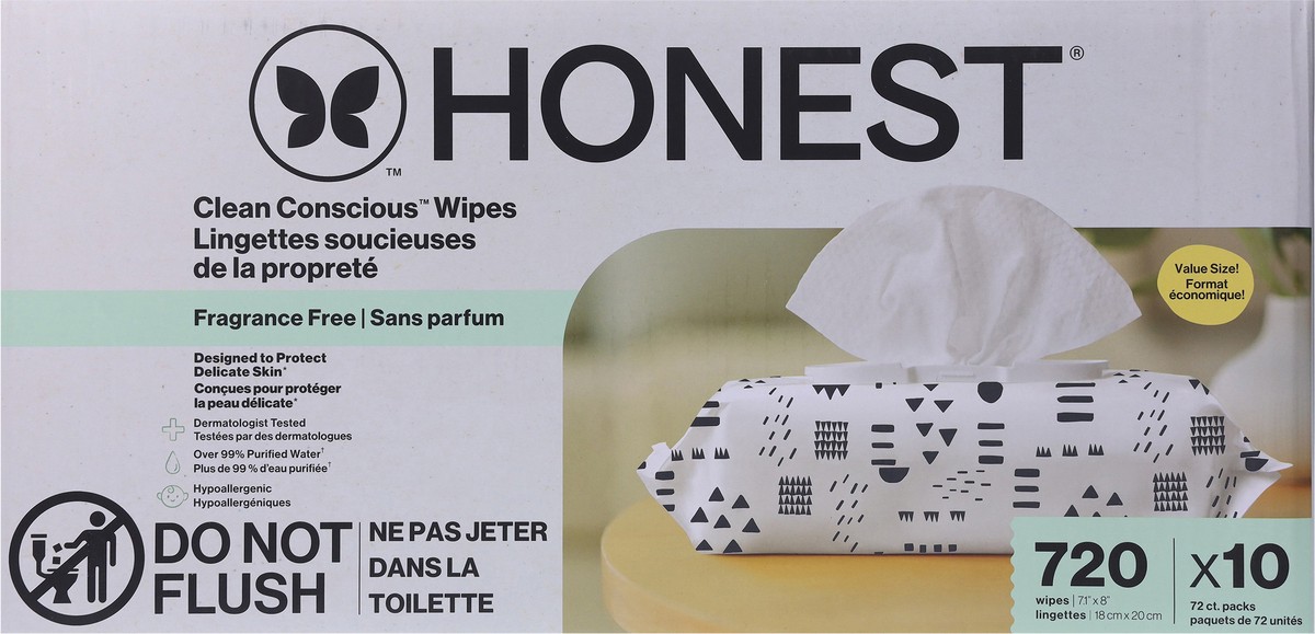 Honest Clean Conscious Fragrance Free Wipes 10 - 72 Wipe Packs