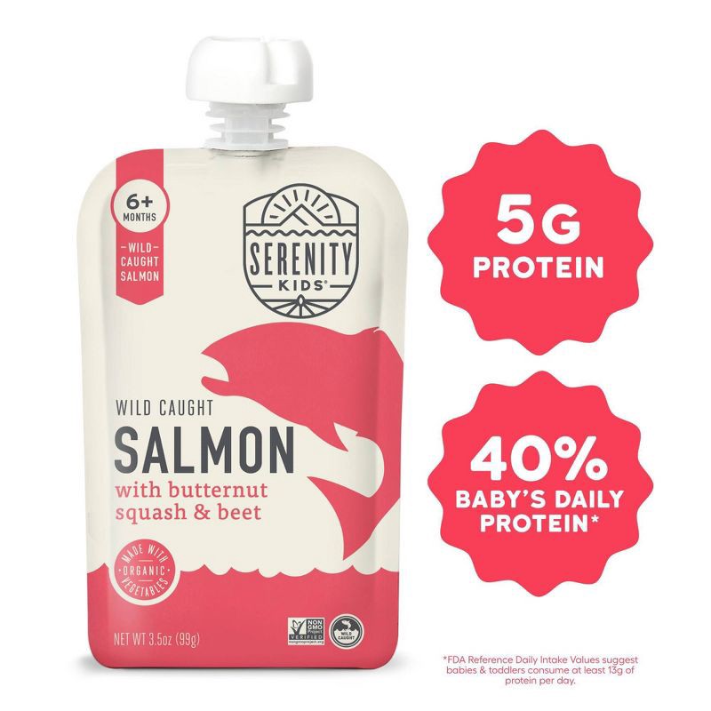 Serenity Kids Wild Caught Salmon with Organic Butternut Squash & Beet Baby Food Pouch - 3.5oz: 6 Months and Up, Organic Certified, Toddler Stage