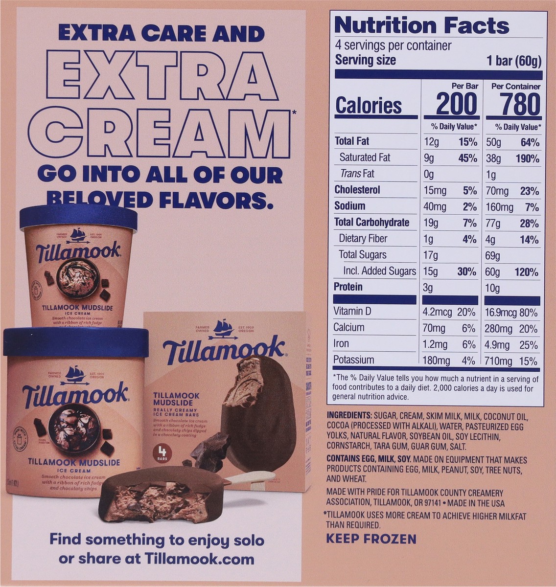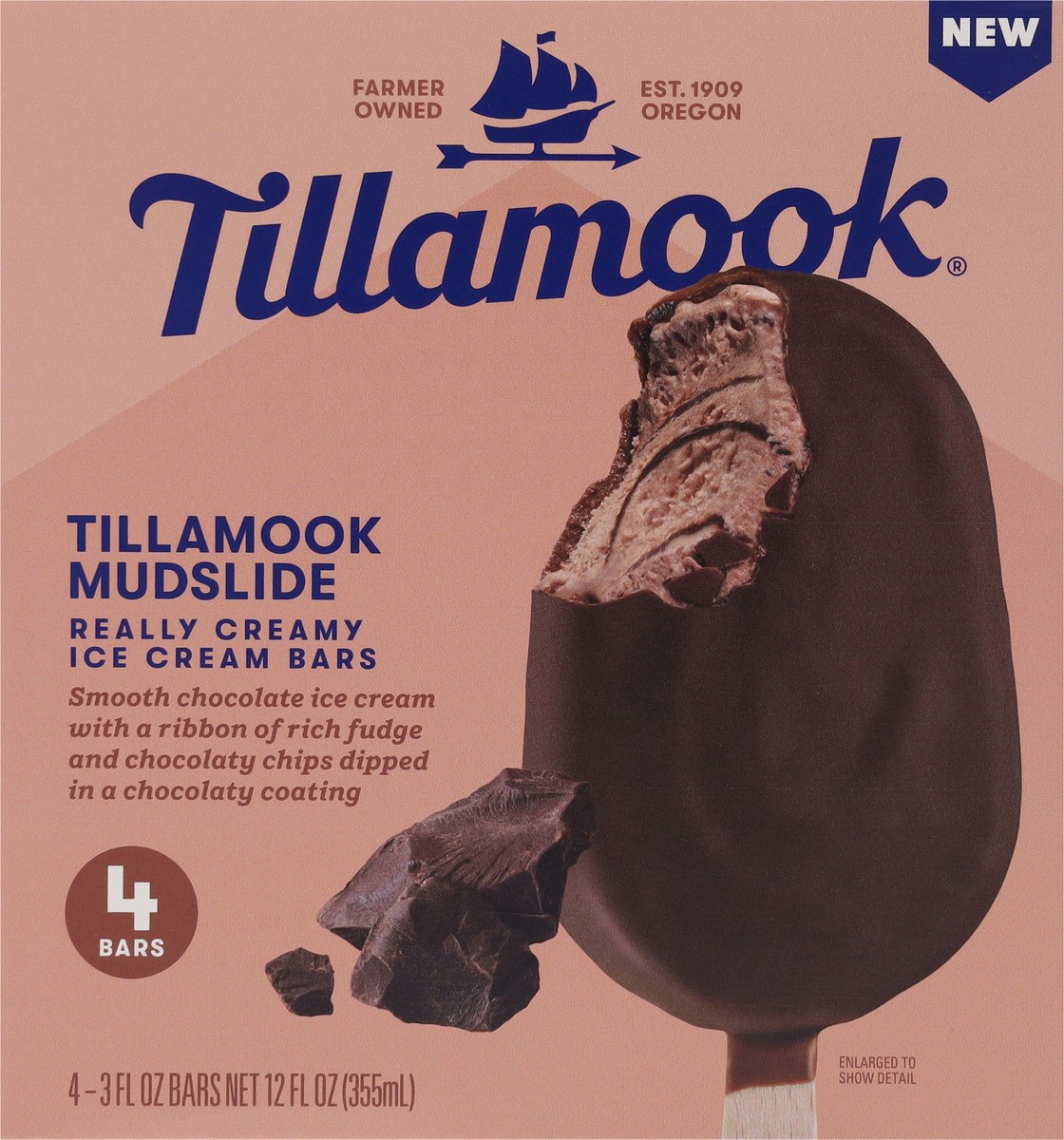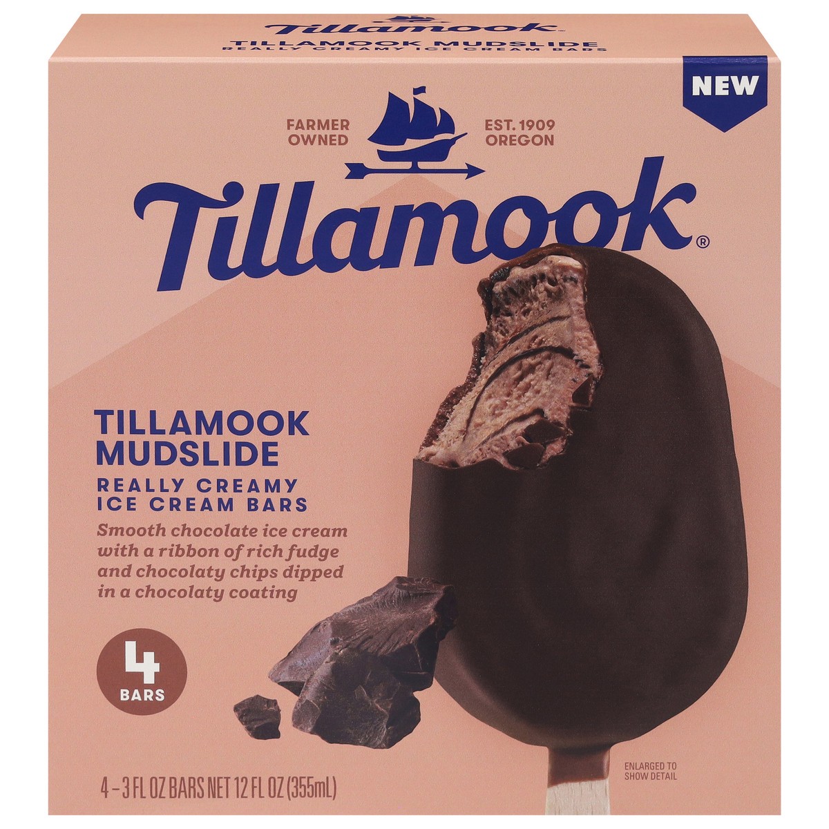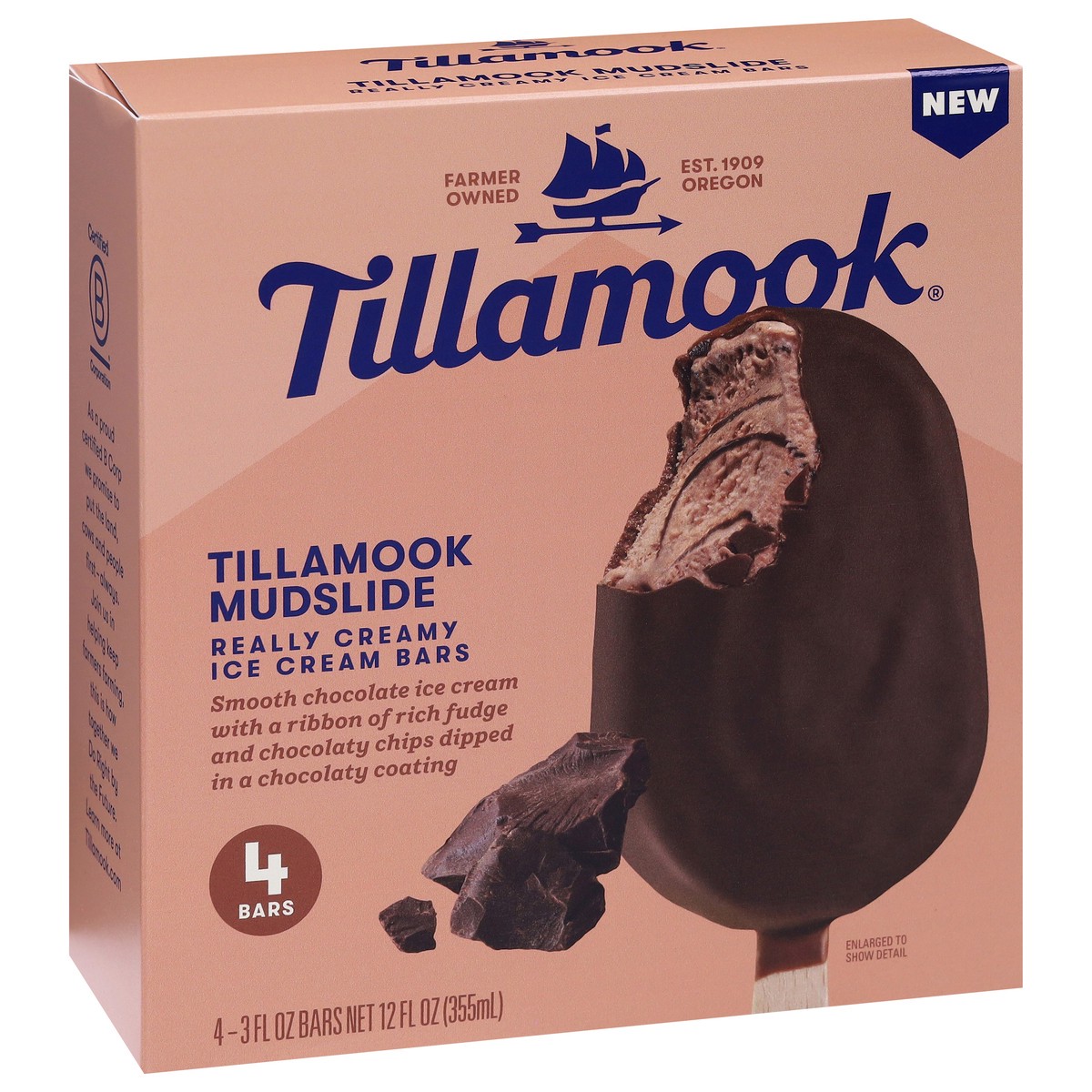 - One 12 oz. package of four individually wrapped Tillamook Chocolate Mudslide Ice Cream Bars