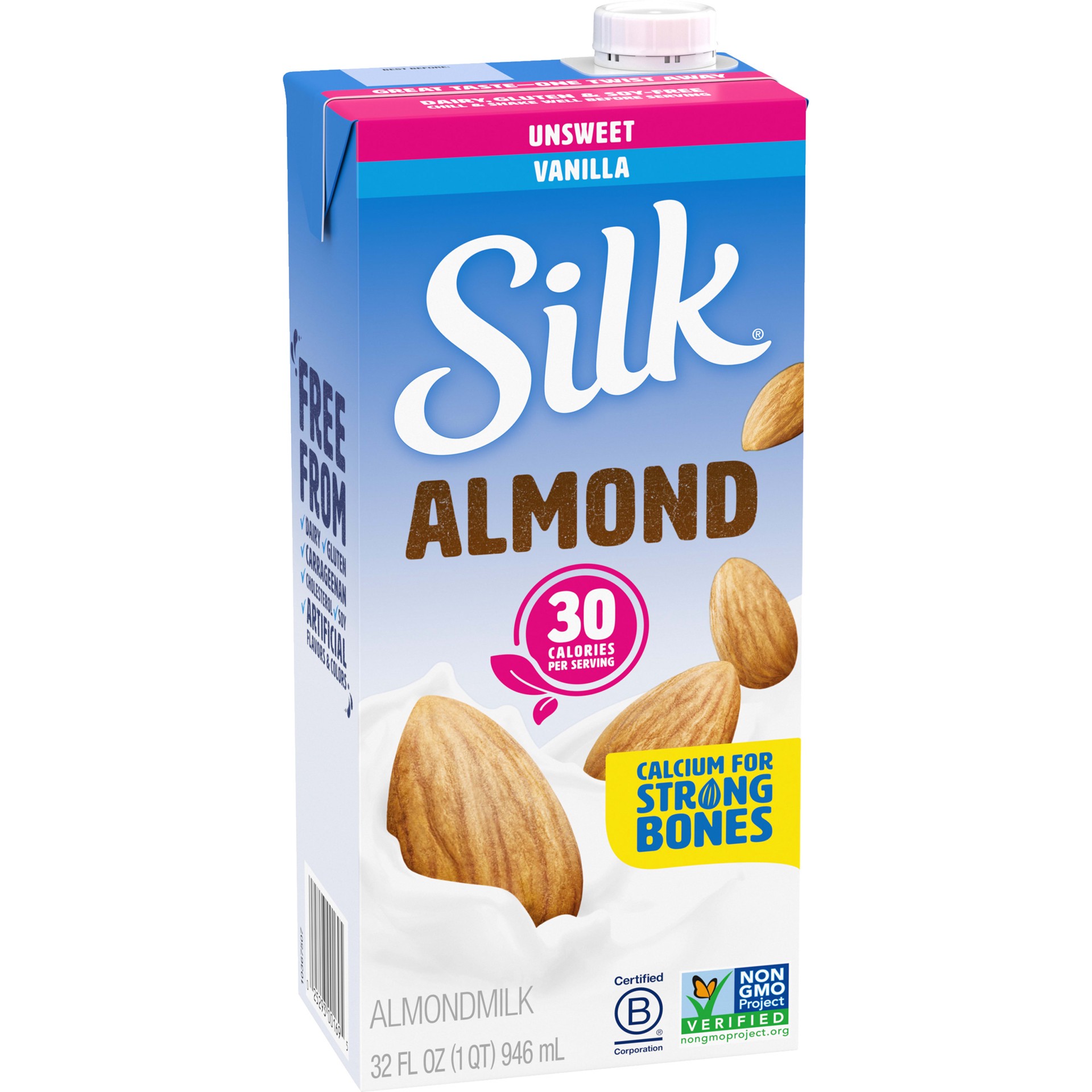 Silk Shelf-Stable Almond Milk, Unsweetened Vanilla, Dairy-Free, Vegan, Non-GMO Project Verified, 1 Quart