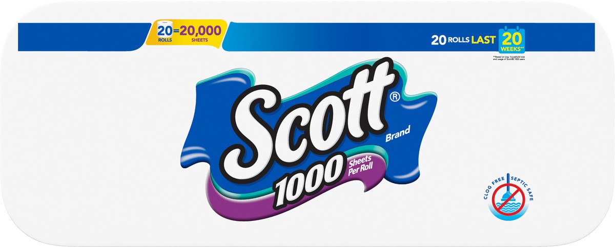 Scott 1000 Toilet Paper helps you spend time on what matters most with fewer roll changes and more value. With Scott 1000 Toilet Paper, you get 20 regular rolls of 1,000 sheets, so you have plenty of …