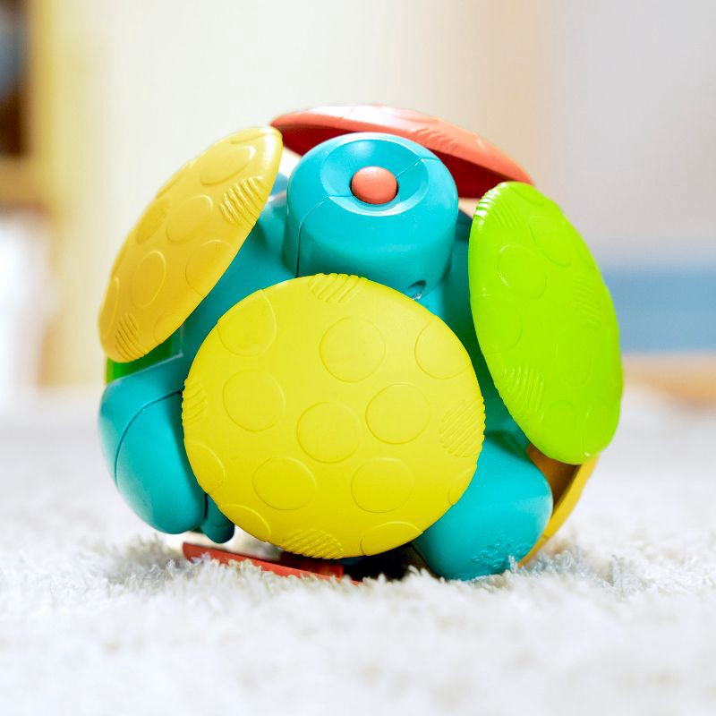 - The Bright Starts Wobble Bobble Ball rolls in unpredictable directions, encouraging baby to chase and giggle with every twist and turn