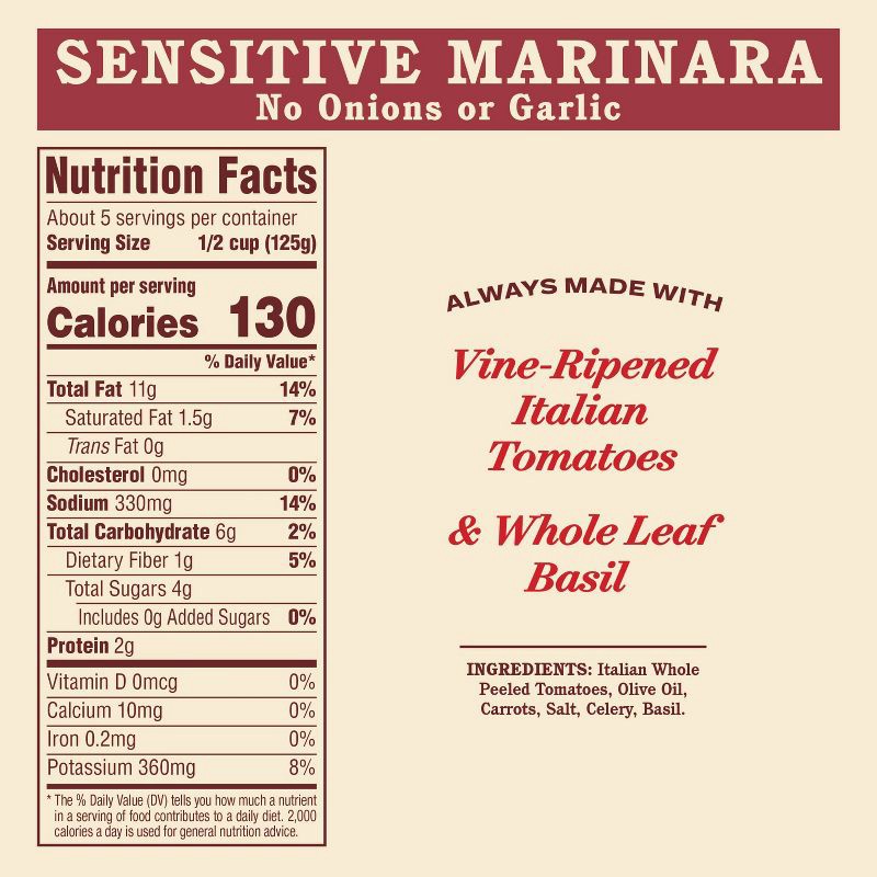Rao's Homemade Sensitive Formula Marinara Sauce Premium Quality All Natural Tomato Sauce & Pasta Sauce Keto Friendly Carb Conscious - 24oz
