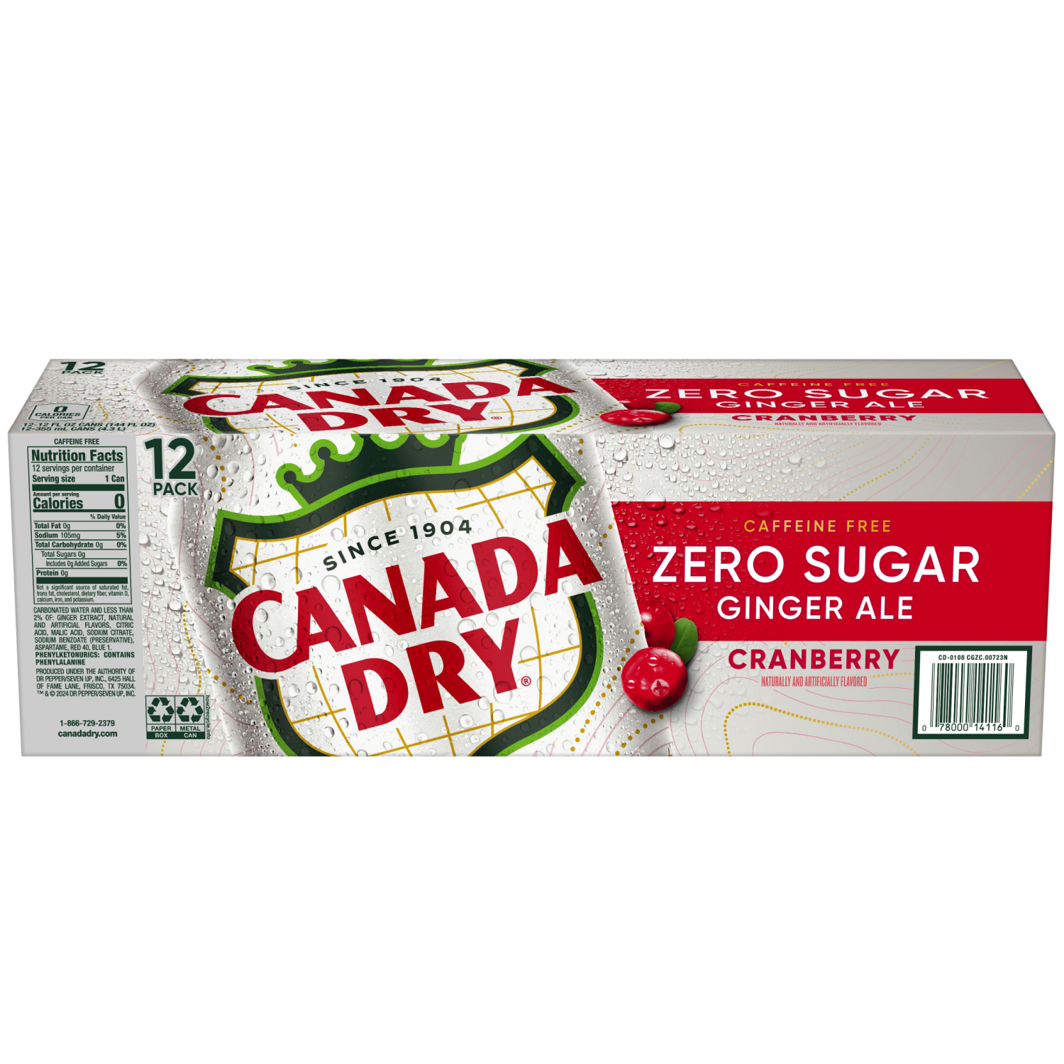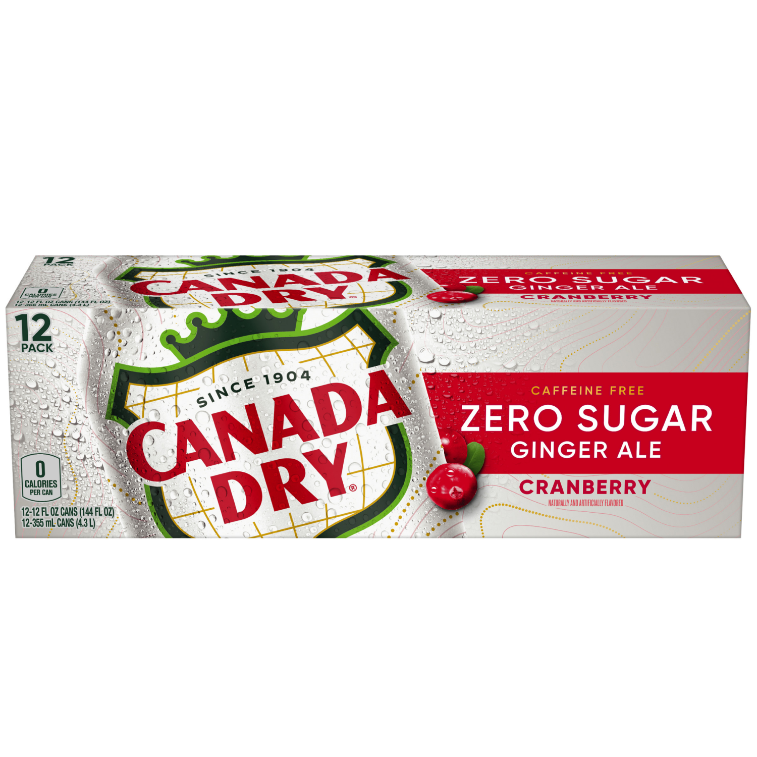 Canada Dry Zero Sugar Cranberry Ginger Ale Soda, 12 fl oz cans, 12 pack