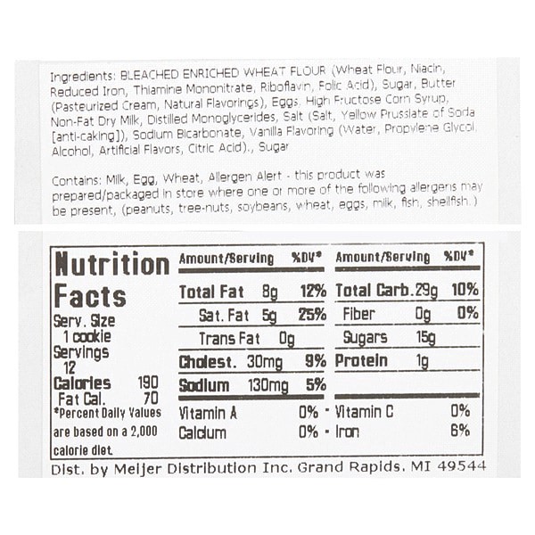Indulge in the sweet delight of Fresh from Meijer Ultimate Sugar Cookies. Each cookie is carefully crafted with enriched wheat flour, creamy butter, and a hint of vanilla flavoring, offering a delicio…